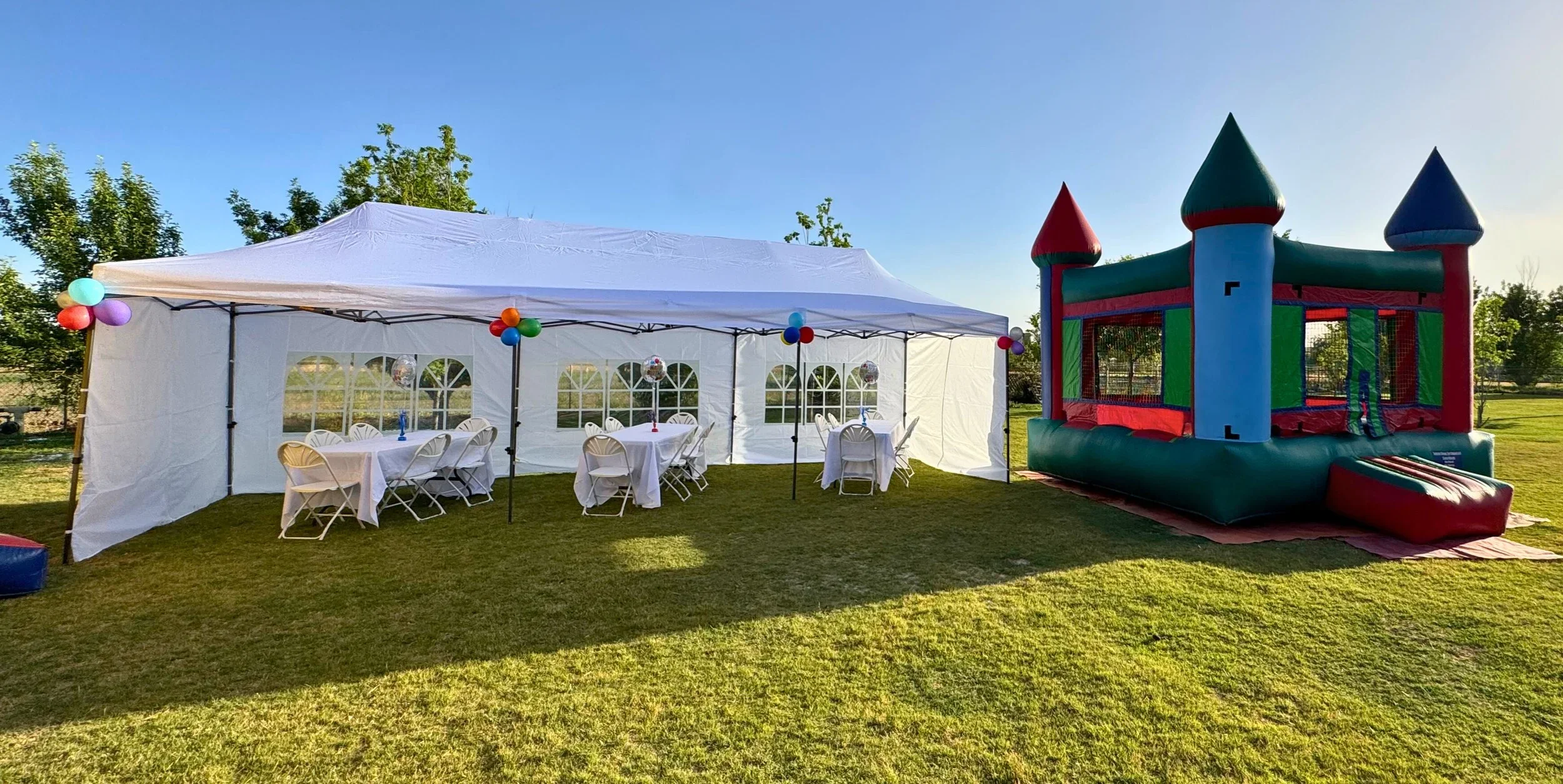 Our most popular size, seating up to 20–24 guests comfortably. Includes a sturdy 10x20 pop-up tent, tables, and chairs — everything you need for a backyard party, graduation, or neighborhood get-together.